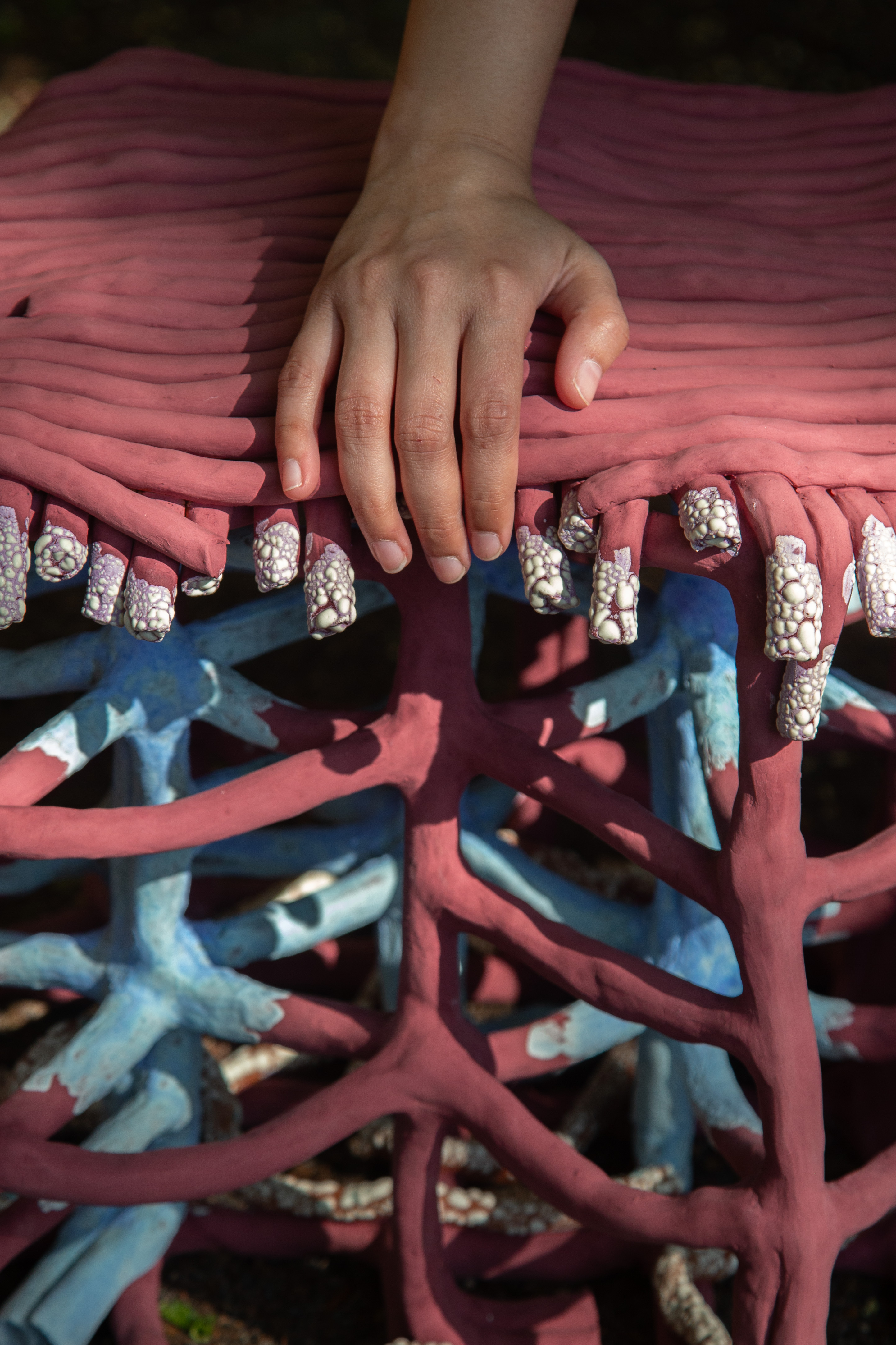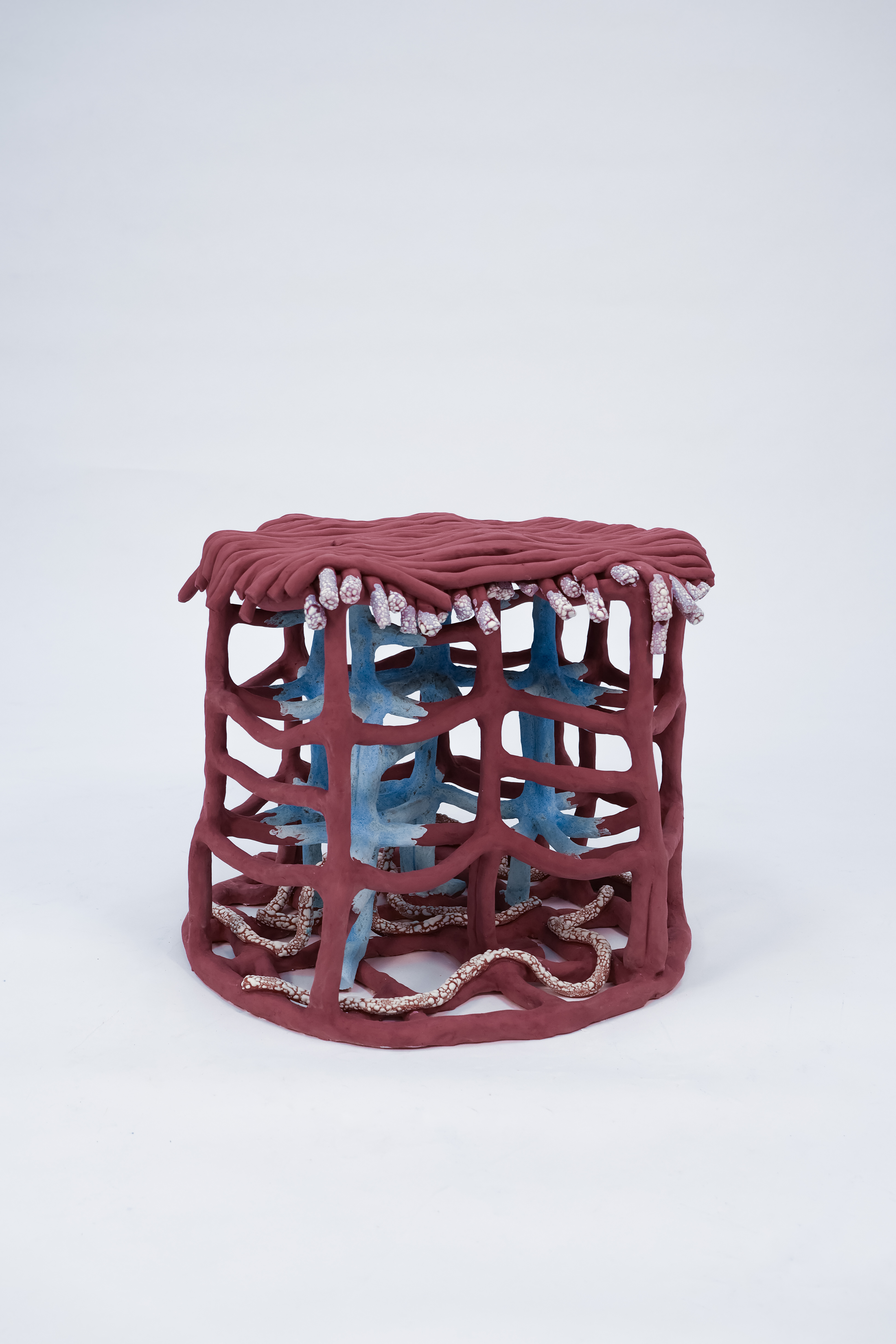 Originally inspired by the layered composition of cakes, the stool evolves organically with each tier taking on the form as the coiling process unfolds. Meanwhile, the surface textures offer maximal tactile and visual engagement.