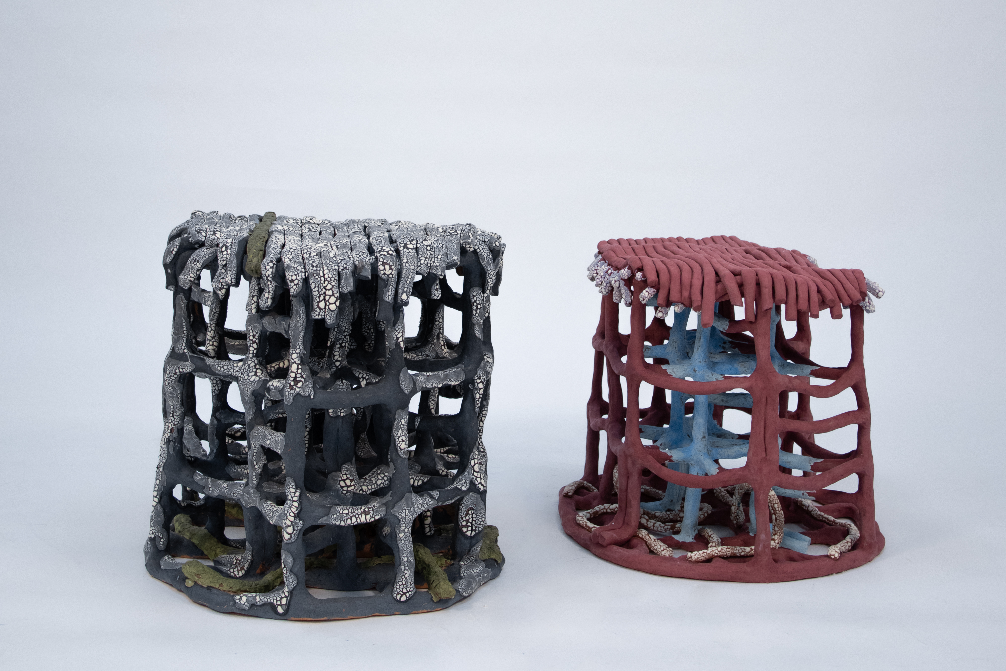 The Baked collection of stools is an exploration of the intricate and ancient technique of coiling clay, as well as glaze textures.