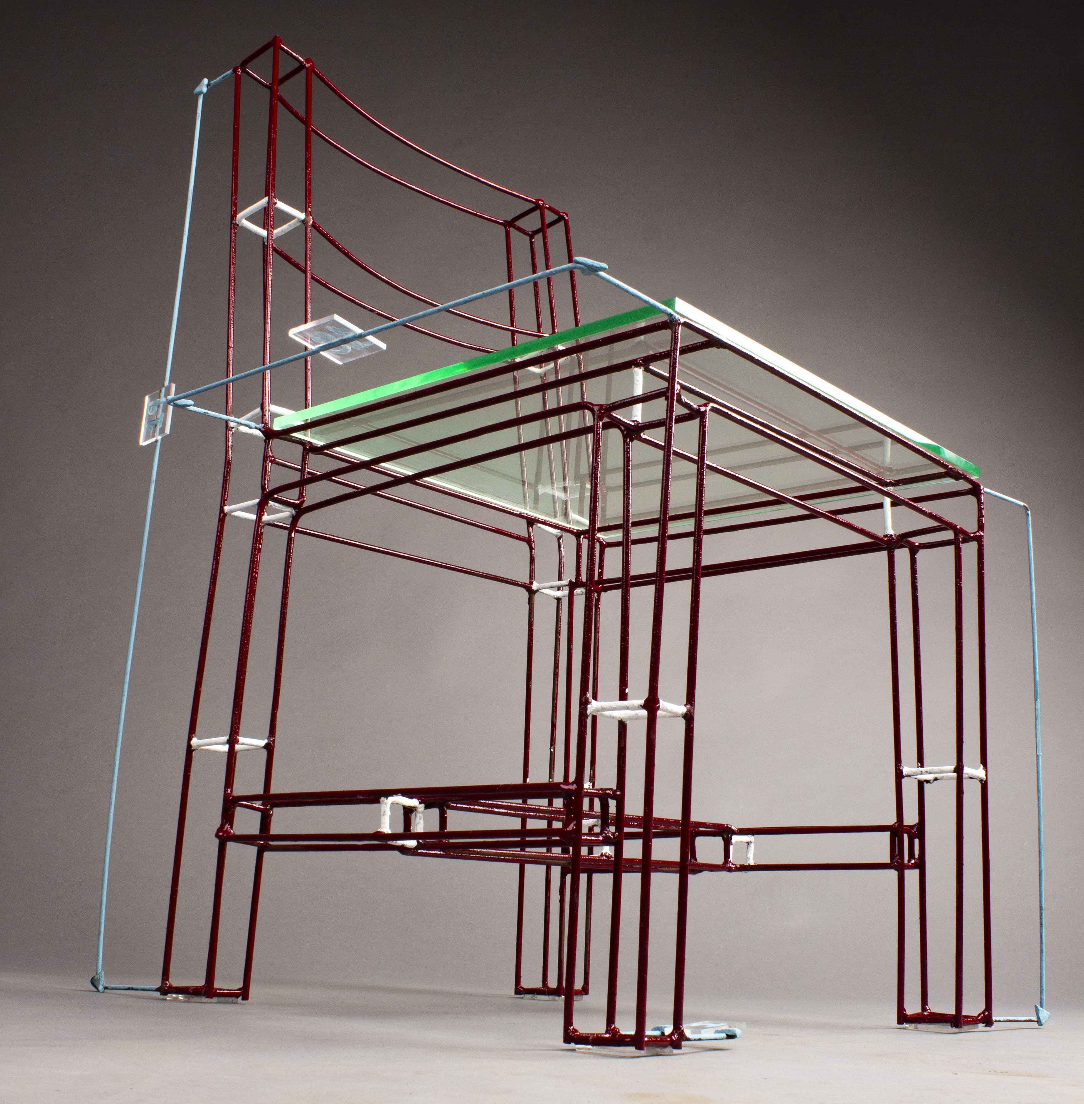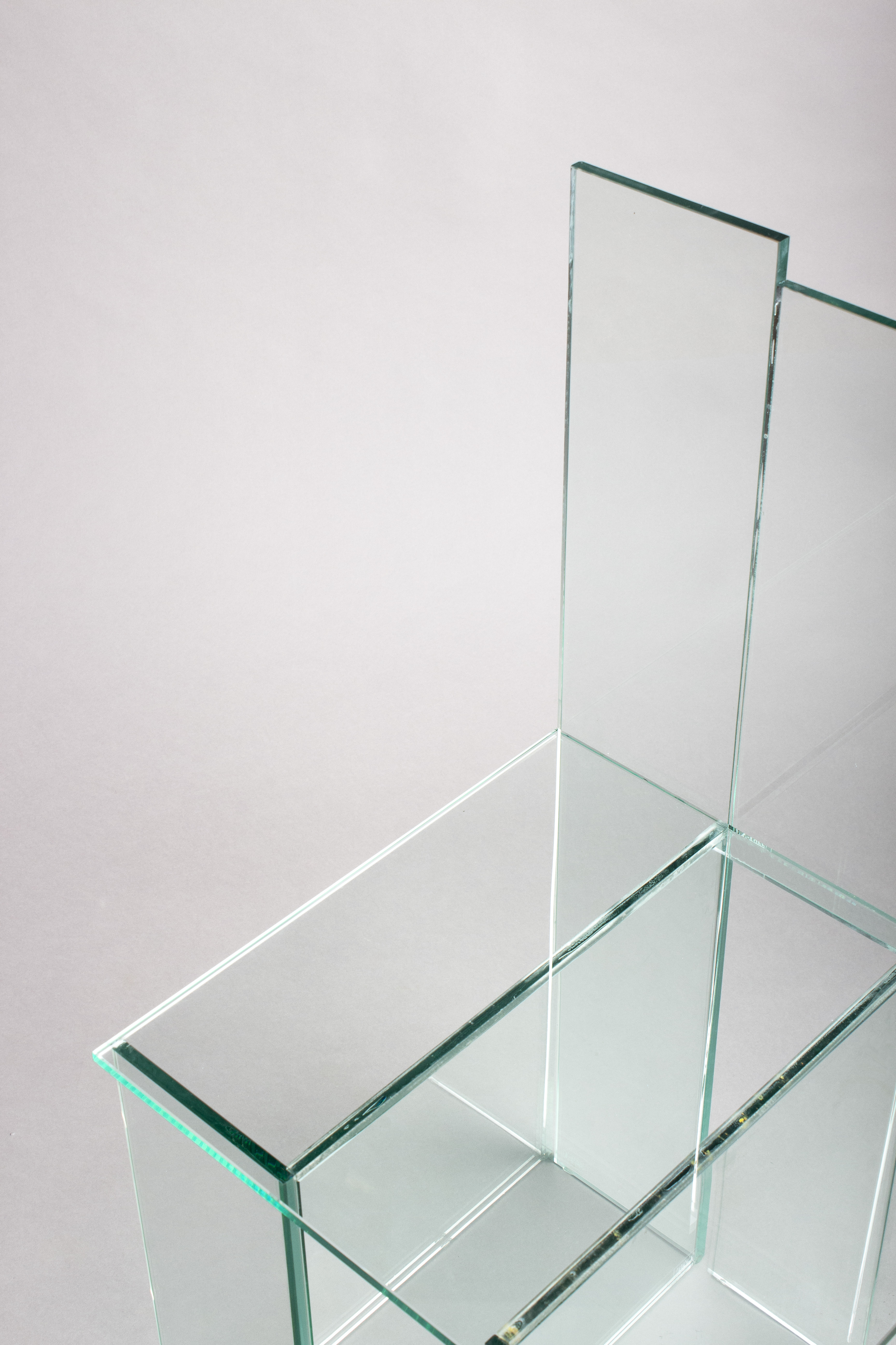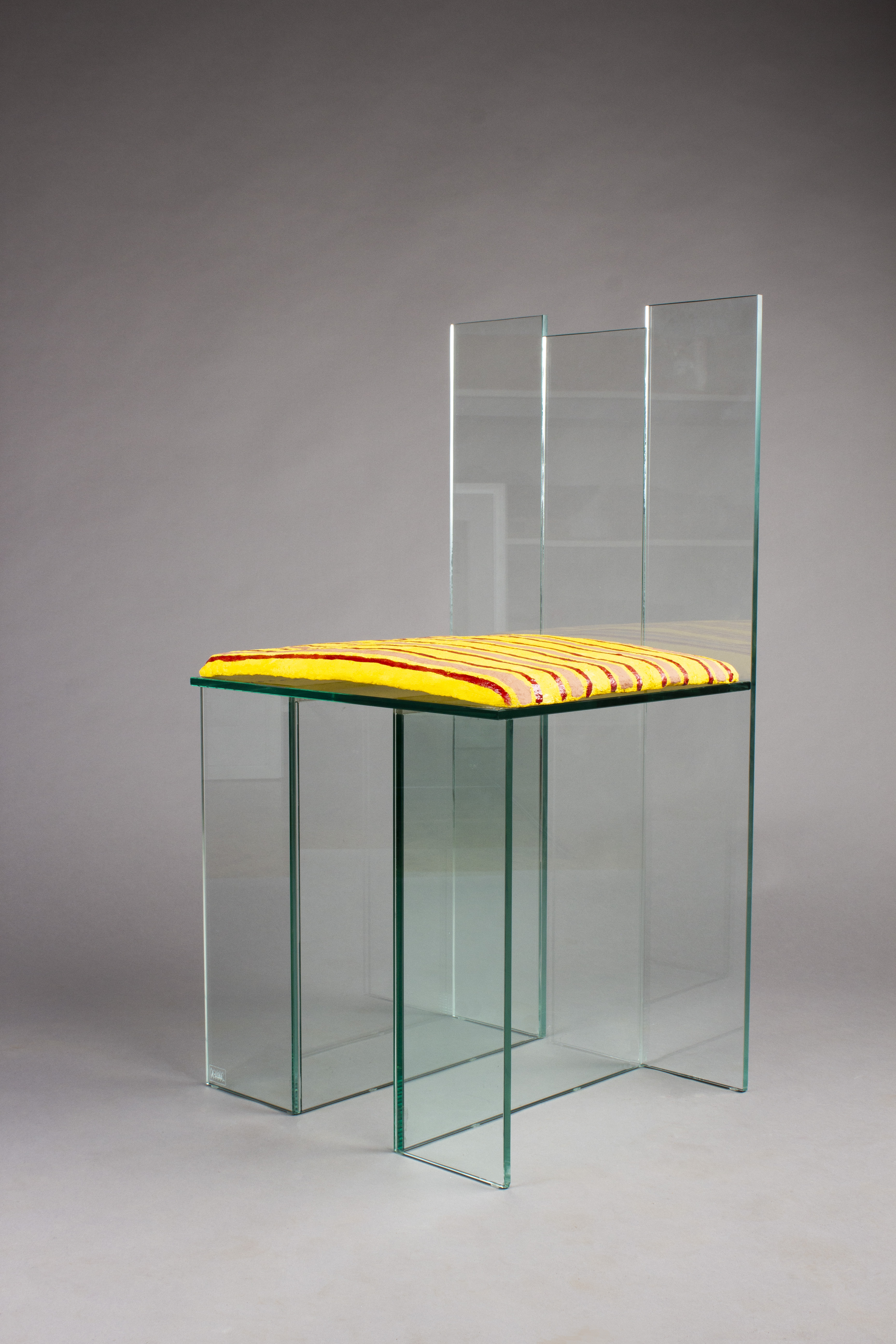 Glass is an expression of identity and status, further charging material by concept. The upholstery is made of paper-crete, the hardness of which juxtaposes the softness of real cushions.
