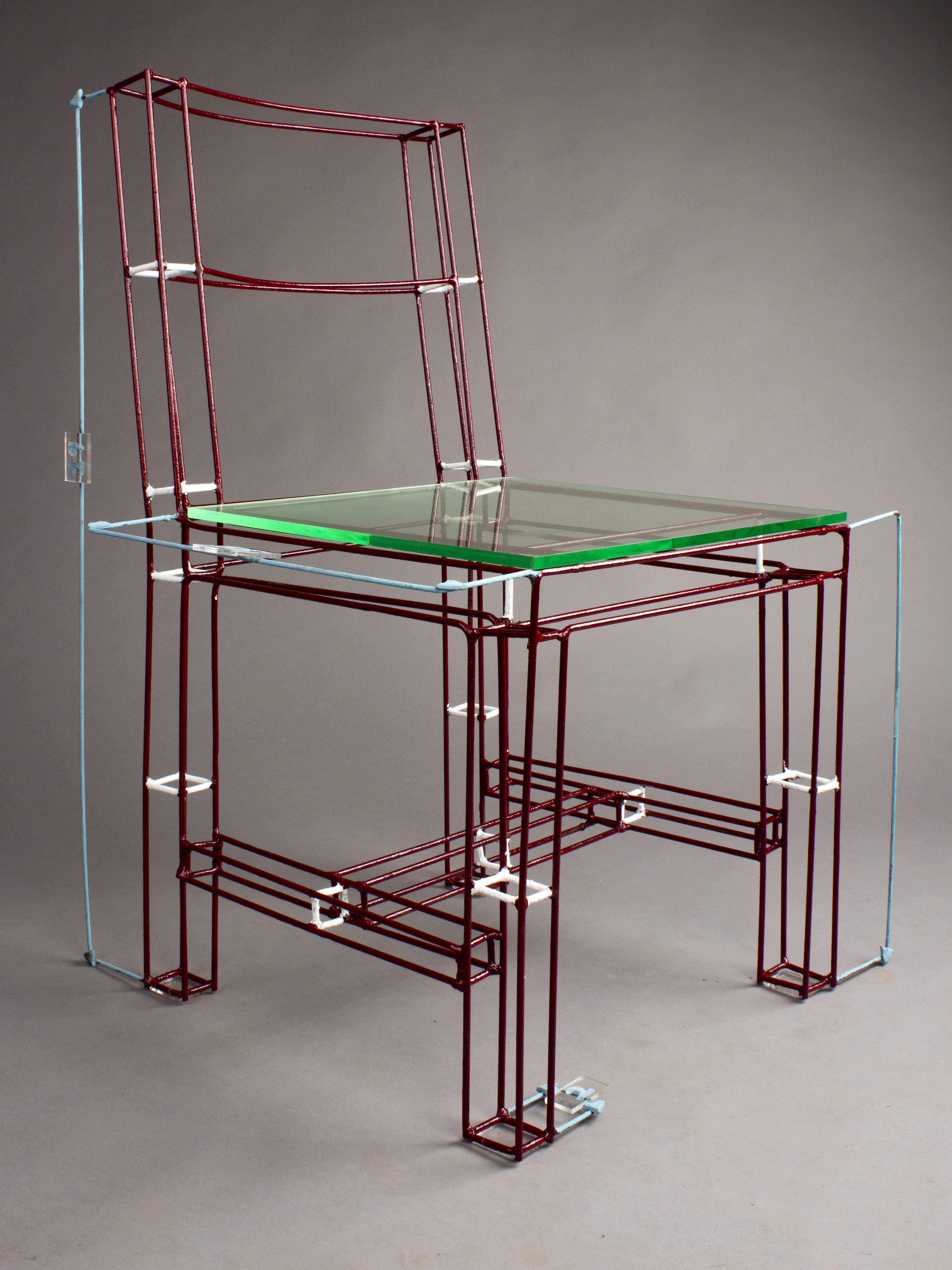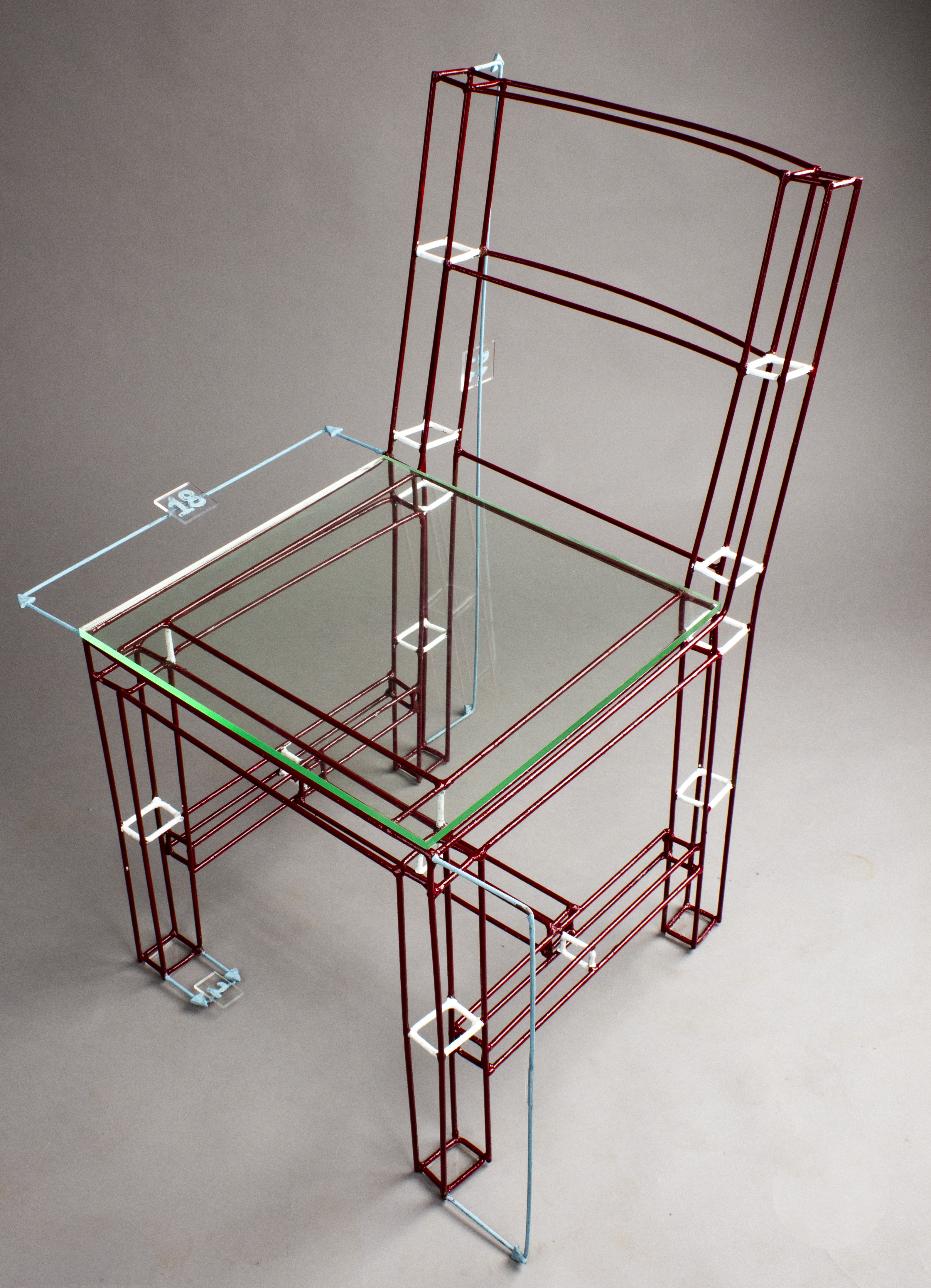 The chair is an actualized wireframe model drawn in AutoCAD software. It represents the advancement of furniture industry and its adaptation to suit the digital era making mass production its best proof of the change.
