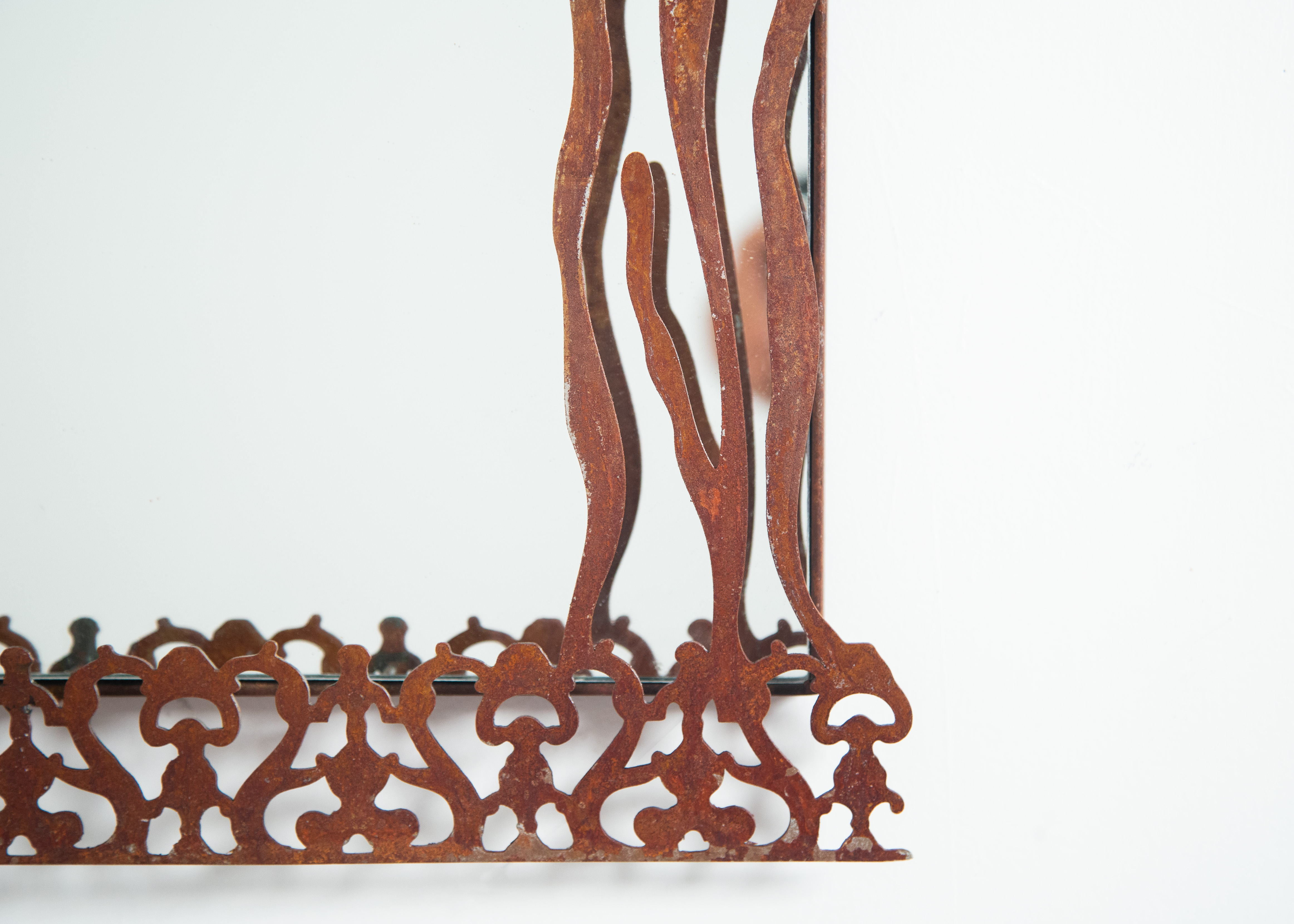 Patinated steel frame and mirror